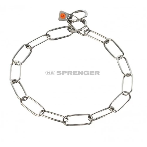 The Hermsprenger Long link stainless steel choke chain fursaver for large breed dogs will not damage the dogs fur. This collar is highly durable and strong.